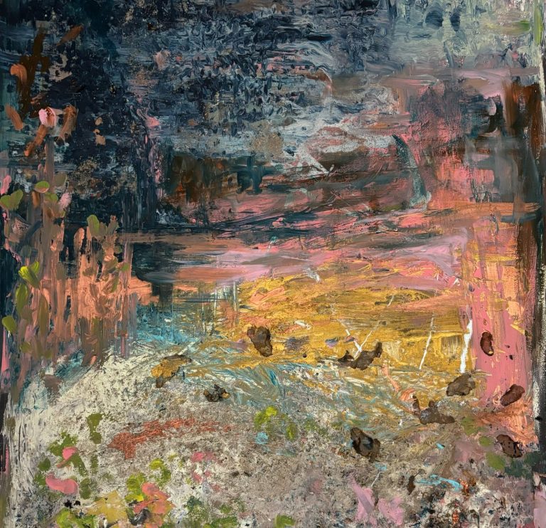 Abstrakte Landschaften male ich meist in einer Mixmedia Technik. Hierbei benutze ich die Verbindung aus Asche, Kohle und Acryl. Eine reduzierte Malpalette und ein ausgewogenes Verhältnis zwischen warmen und kalten Farben erleichtern mir das Eintauchen in die Stimmung. Spachtel und Fingerabdrücke sind weitere Elemente, die ich nutze, um die landschaftliche Schönheit zu zeigen.